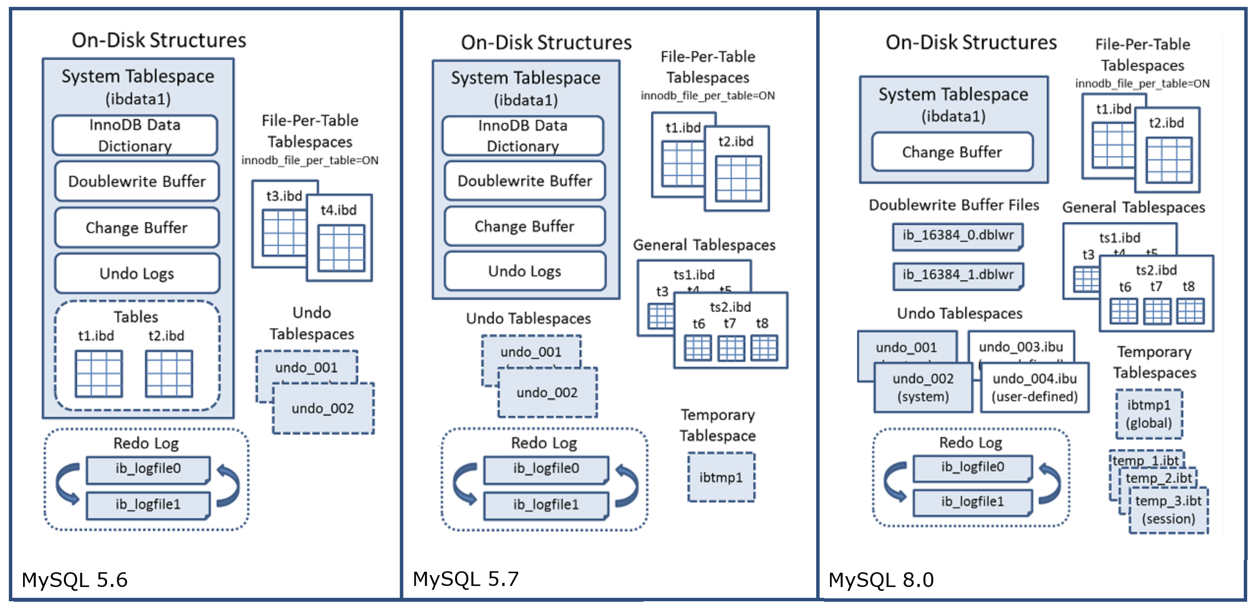 8.0 이상 | 기본적으로 별도 언두 테이블 스페이스에 생성 |