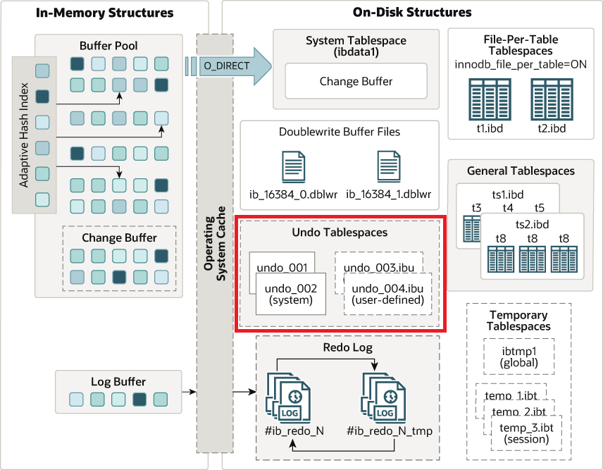 언두 로그의 I/O 패턴으로 인해, 언두 테이블스페이스는 SSD 저장소에 저장하는것이 가장 적합합니다.
